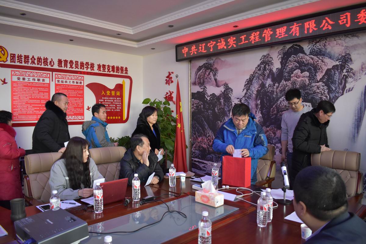 2018年2月7日上午十點,在公司一樓會議室召開了《中共遼寧誠實工程管理有限公司委員會換屆選舉大會》,28名黨員同志參加了此次大會,會議由黨委副書記馮玉琢主持,新撫區委組織部任部長及馮疆偉出席了此次會議。