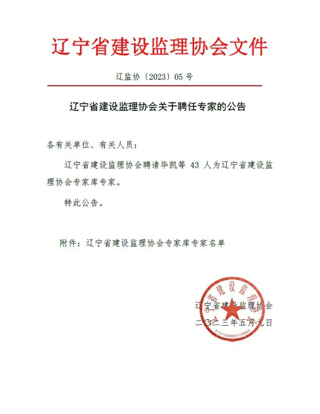 為滿足我省建設(shè)工程監(jiān)理行業(yè)改革發(fā)展需要,省建設(shè)監(jiān)理協(xié)會(huì)決定建立專家?guī)觳⒊闪<椅瘑T會(huì),此次聘請(qǐng)全省專家共計(jì)43人加入專家?guī)。我公司高?jí)工程師黃思敏被聘為資質(zhì)管理(管理類)、土建、水暖(技術(shù)類)專家。此次專家?guī)斓某闪,將充分發(fā)揮行業(yè)專家的作用,加強(qiáng)協(xié)會(huì)技術(shù)力量、為我省監(jiān)理行業(yè)服務(wù),維護(hù)行業(yè)市場(chǎng)各方面的合法權(quán)益。而黃思敏同志也將帶著“誠(chéng)實(shí)精神、誠(chéng)實(shí)技術(shù)”為我省監(jiān)理行業(yè)貢獻(xiàn)力量!