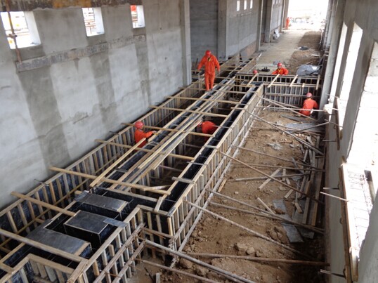 變頻室室內(nèi)電纜溝混凝土澆筑筏板支設(shè)